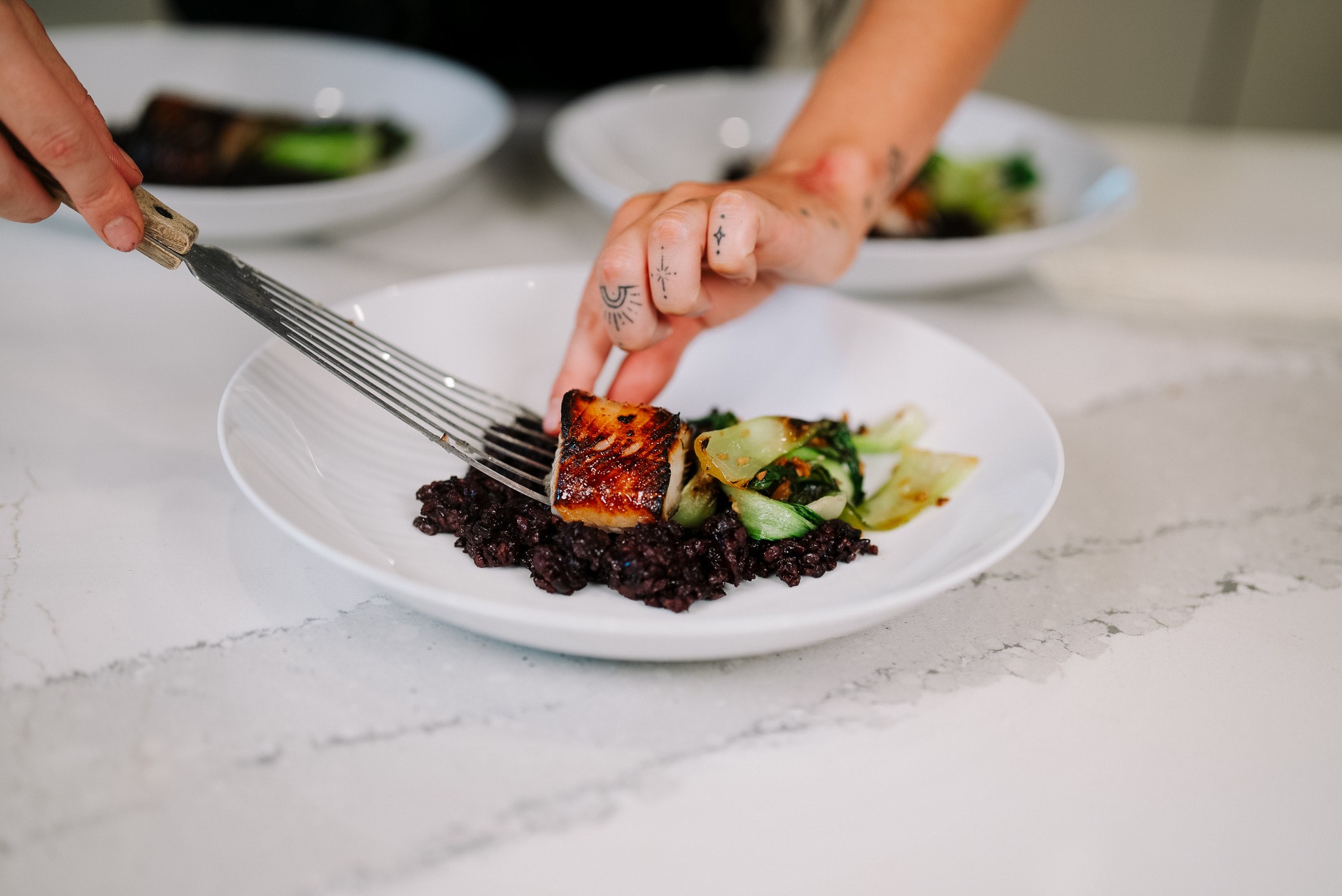 Miso black cod over nero black rice